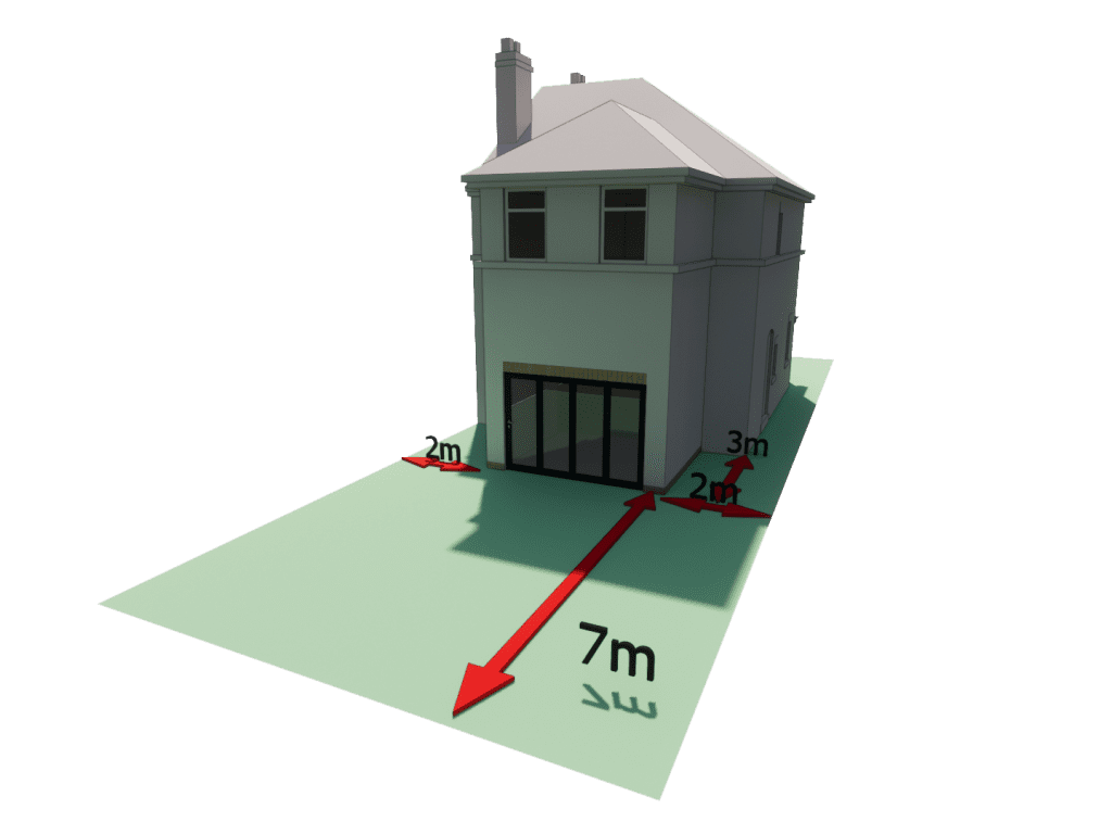 A two-storey rear extension can be built under Permitted Development rights without needing prior notification. It’s essential to remember that this extension must not include any windows on the side elevation’s wall or roof slope for the upper floors. Additionally, it should take up less than 50% of the original house’s width and less than 50% of the land surrounding it. The term “original” refers to the property’s most recent state when it was constructed or, for properties built before 1948, its condition as of July 1, 1948. To comply with regulations, the extension should use materials that match the existing house and have eaves and a ridge height that does not exceed that of the current structure. For terraced homes, the extension’s height must not surpass 3.5 meters above the height of the adjacent terrace. It’s also important to note that single-storey homes cannot take advantage of this type of extension. Projection Limit: It must not extend more than 3 metres beyond the original rear wall of the house. Boundary Distance: It must be at least 7 metres away from the rear boundary. Height: The eaves and ridge heights must not be higher than those of the existing house. Side Windows: Any upper-floor windows in a side wall must be obscure-glazed and non-opening (unless the openable part is more than 1.7 metres above the floor).